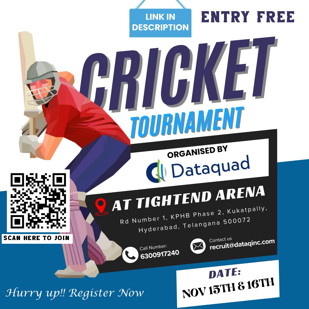http://bit.ly/4ey8w48 https://jobs.nvoids.com/job_details.jsp?id=1923888&uid= DataQuad Cricket Tournament DataQuad is thrilled to invite all IT recruiters, sales recruiters, and companies to our upcoming Cricket Tournament! This is your chance to enjoy a weekend of excitement, teamwork, and sportsmanship, while connecting with peers from across the industry. ENTRY FREE Location: Tightened Arena, Road No. 1, KPHB Phase 2, Kukatpally, Hyderabad, Telangana, 500072 Dates: Friday & Saturday (this weekend) Entry Fee: Absolutely Free! APPLY : https://lnkd.in/eGmchZMi Bring your A-game, form your teams, and come join us for an exhilarating event. Don t miss out on this fantastic networking opportunity on the field! Keywords: information technology DataQuad Cricket Tournament [email protected] http://bit.ly/4ey8w48 https://jobs.nvoids.com/job_details.jsp?id=1923888&uid= |