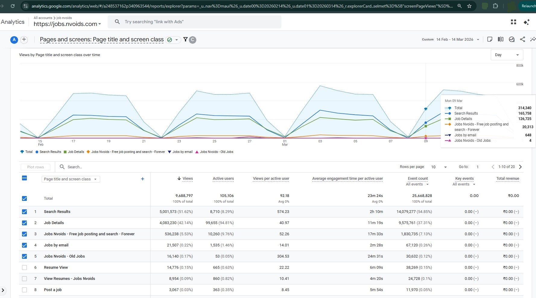Over 1.5 million+ job posts and hotlists and 20K+ resumes indexed in Google and Bing.